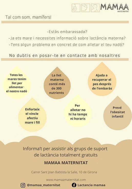 Para saber fechas y horarios de los talleres, puedes visitar nuestro instagram @mamaa_maternitat, ponerte en contacto des del formulario o enviar un whatsapp al 671877722.